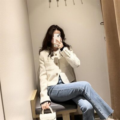 Một thế hệ UR mùa thu ngọt ngào tự trồng kết cấu hương thơm nhỏ áo khoác ngắn nữ WG36R1EN2001