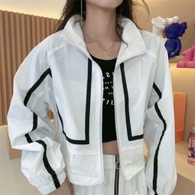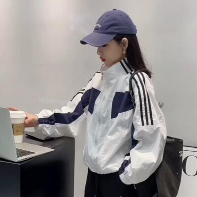 Áo khoác bóng chày nối màu tương phản nữ mùa xuân hè 2023 mới dáng rộng thể thao giản dị quần áo chống nắng thời trang áo khoác thủy triều