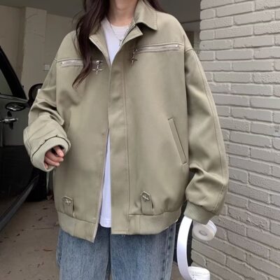 Mỹ Retro Phi Công Bảo Hộ Lao Động Áo Khoác Áo Khoác Nữ Xuân Thu Mới Phong Cách Hồng Kông Tay Dài Đồng Phục Bóng Chày Đa Năng