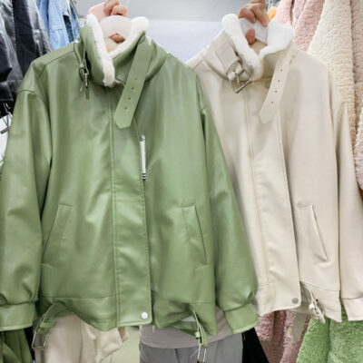 Size Lớn Nữ Mỡ Quần Áo Xuân Thu Với Lông Thú Và Thịt Cừu Áo Khoác Da Lộn Dày Áo Khoác Xe Máy 200 Catties