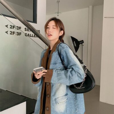 Áo khoác denim nữ 2023 mùa xuân và mùa thu mới phong cách Hàn Quốc dáng rộng sang trọng phù hợp với mọi lứa tuổi áo khoác học sinh áo khoác phong cách retro