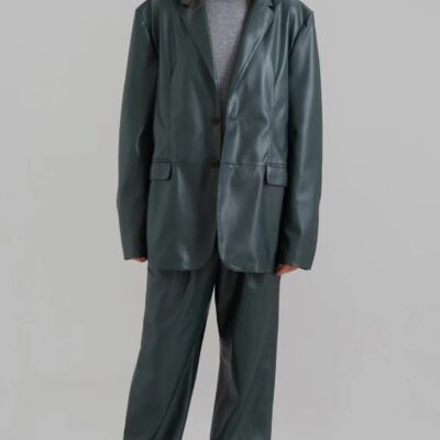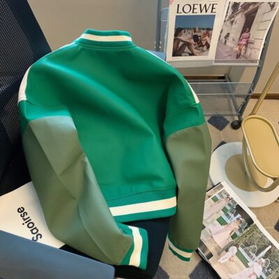 Mỹ Retro Xanh Áo Khoác Bóng Chày Nữ Thu Đông 2023 Mới Da PU Nối Áo Khoác Cao Cấp Ins Triều