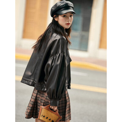 Mùa Xuân Và Mùa Thu 2023 Nữ Nữ Da Ngắn Đen Mỏng Xe Máy Áo Khoác Da Pu Nữ Nhỏ Áo Khoác Da