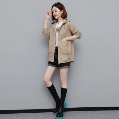23 Mùa Xuân Mới Nữ Cổ Áo Đứng Có Mũ Áo Chống Gió Áo Khoác Ngắn Chống Gió Áo Khoác Thể Thao 0222j7