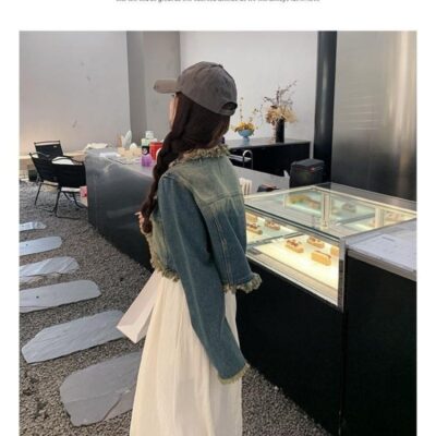 Áo khoác denim nữ phong cách ngắn S bùng nổ phong cách Mỹ phong cách retro viền lông khí chất thiết kế cảm giác áo khoác một mảnh bán buôn đầu mùa xuân