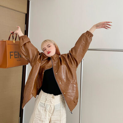 Áo khoác ngắn nữ da thật Hermes cùng kiểu dáng áo khoác skinny da cừu cao cấp mùa xuân mới 2023