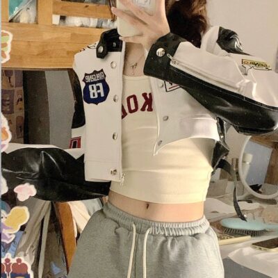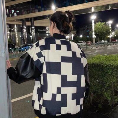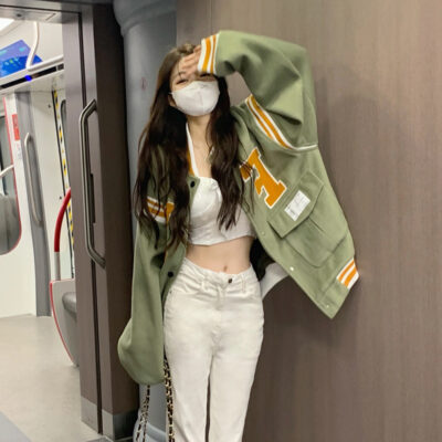 _Áo khoác rộng nối rời đồng phục bóng chày phong cách Mỹ cổ điển ngọt ngào và mát mẻ