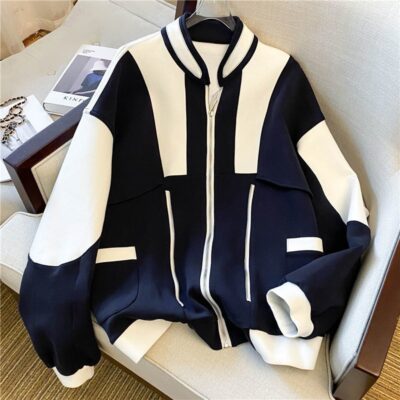 2023 mới nối màu tương phản áo khoác ngắn nữ xuân thu đồng phục bóng chày áo khoác áo khoác nữ một mảnh thay mặt cho tóc