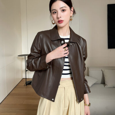 2023 Haining Mùa Xuân Và Mùa Thu Mới Áo Khoác Da Cừu Da Thật Áo Khoác Nữ Xe Máy Phong Cách Ngắn Trông Mỏng Và Đẹp Trai