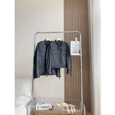 Áo khoác da Heroes Lớp A Da cừu lớp một Áo khoác da kết cấu mờ Áo khoác cổ đứng Áo khoác sành điệu cho nam và nữ