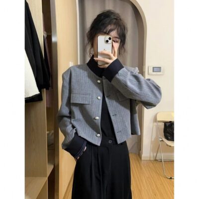 Áo khoác gió nữ dáng rộng thường ngày mùa xuân và mùa thu 2023 phong cách mới áo khoác bóng chày sọc thích hợp năm nay áo khoác hàng đầu