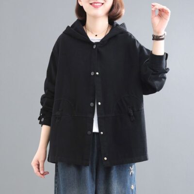 Áo khoác denim có mũ trùm đầu nữ áo khoác thường mùa xuân và mùa thu 2023 mới rời kích thước lớn ngắn dụng cụ áo khoác
