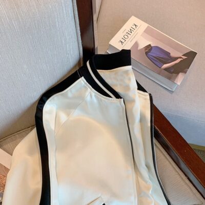 Ga Châu Âu 2023 Thời Trang Mới Đánh Màu Siêu Hot Đồng Phục Bóng Chày Thẳng Acetate Áo Khoác Thể Thao Áo Khoác Thời Trang Nữ