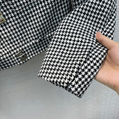 Xiaoxiangfeng houndstooth áo khoác len ngắn nữ 2023 mùa xuân mới và mùa thu ngành công nghiệp nặng eo cao mỏng áo khoác nhỏ phù hợp với