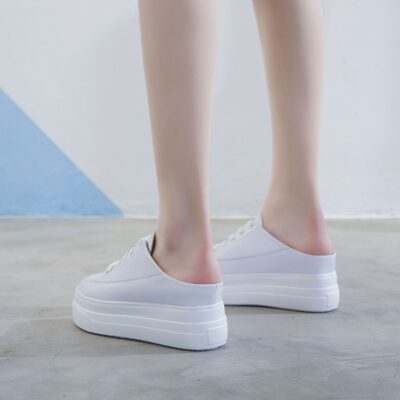 Tăng Chiều Cao 6CM Rỗng Lưới Thoáng Khí Giày Nhỏ Màu Trắng Da Nữ Xuân Thu 2023 Mới Bánh Xốp Đế Dày giày Thường