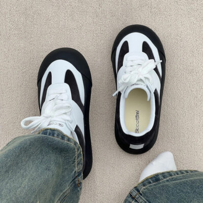 Vị trí mới Bai Jingting với cùng một phong cách giày phồng giày nữ cổ thấp đáy dày giản dị giày huấn luyện đạo đức béo giày gấu trúc đen trắng