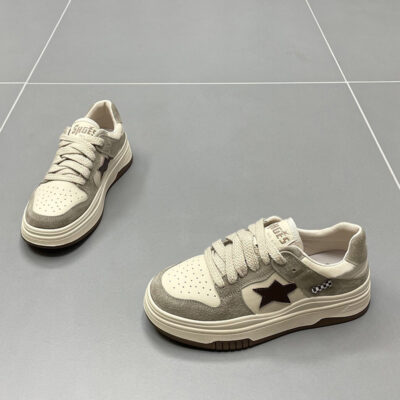 Giày thể thao kiểu dáng đơn giản phong cách châu Âu cho nữ mùa hè 2023 mới giày thể thao mũi tròn cột dây hình ngôi sao đế dày phù hợp với tất cả các trận đấu