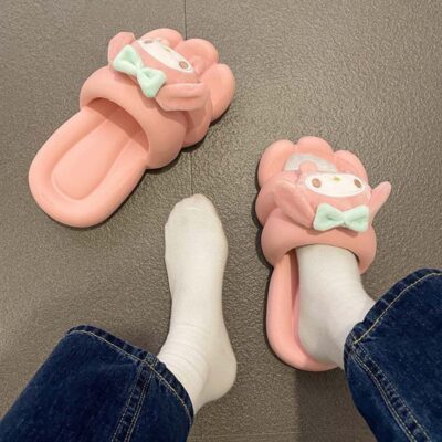 Phim hoạt hình cô gái dễ thương Dép nửa đầu Baotou Áo khoác ngoài mùa hè cho nữ Hàng ngày Đáy dày Bước Shit Feeling Lưới Đỏ Phong cách Hàn Quốc Dép và Dép