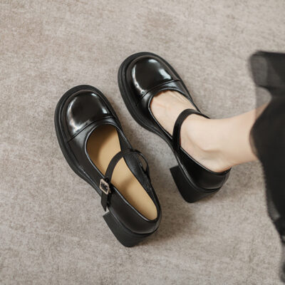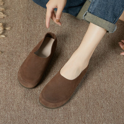Bạch Kim Ban Đầu Handmade Retro Giày Nữ Da Đơn Giày Mũi Tròn Lớp Đáy Mềm Chà Da Mẹ Giày