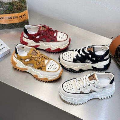 Đế Dày Rỗng Phối Màu Hợp Thời Trang Tăng Chiều Cao Giày Nữ Mùa Hè 2023 Giày Lỗ Tất Thể Thao Giày Da Bố Đế Dày