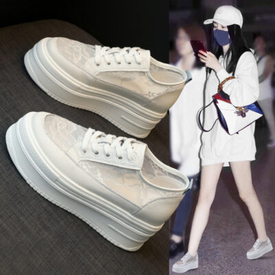 Giày lưới tăng chiều cao bên trong cho nữ mùa hè 2023 phiên bản Hàn Quốc mới màu đỏ lưới thoáng khí đế dày giày cũ đế dày ins