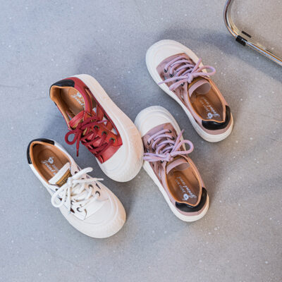 sheii Su Yinyin] Cherry Blossom Street ~ Đầu tròn Hàn Quốc thật lụa satin đáy dày buộc dây giày thường giày thể thao nữ