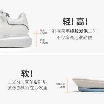 Giày McQueen nhỏ màu trắng da thật cho nữ mùa xuân 2023 giày thể thao phù hợp mới giày đế bằng đế dày tăng chiều cao