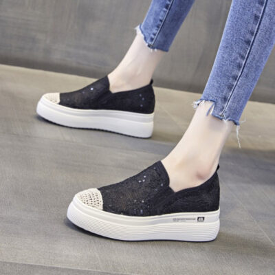 Giày ngư dân đế dày giày lười nữ mùa hè 2023 mới bề mặt lưới thoáng khí giày nhỏ có mùi thơm bên trong giày nữ tăng chiều cao