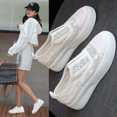Giày nữ khoét lỗ mùa xuân hè 2023 phong cách mới bên trong thoải mái đế dày giày nhỏ màu trắng giày lười lưới thoáng khí giày nữ