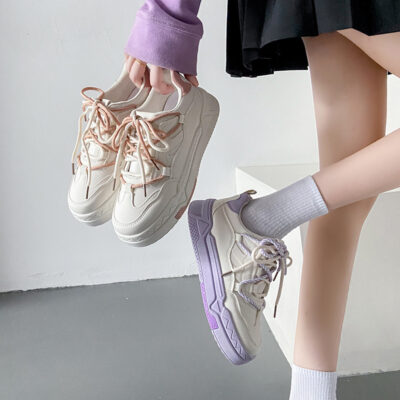 Giày nữ phong cách Hyuna mùa hè 2023 mới đế dày có váy giày nhỏ màu trắng sang trọng giày thể thao màu tím phù hợp với mọi lứa tuổi