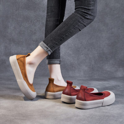 Giày bánh quy đế dày nữ da bò nguyên miếng giày nhỏ màu trắng tăng bình thường đế thấp đế bằng bánh xốp thể thao đáy nho mẹ da thật