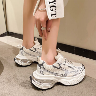Mùa Hè Mới Lưới Nhỏ Trắng Giày Nữ 2023 Đầu Lớn Bánh Mì Giày Muffin Đáy Thoáng Khí 2 Giày Một Mảnh