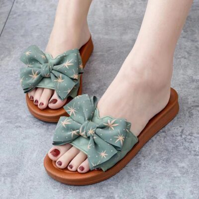 Mùa hè mới của phụ nữ xăng đan và dép đi trong nhà nơ ngọt dép đi trong nhà chống trượt phẳng thời trang flip flops phụ nữ