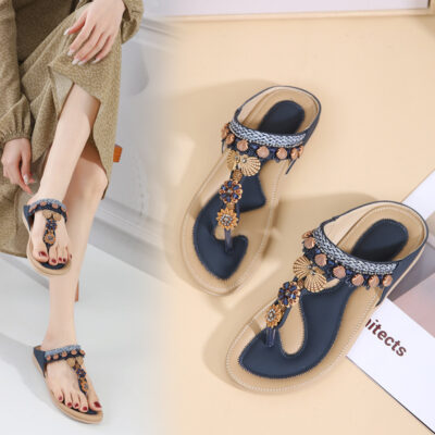 Mùa Hè 2023 Mới Phong Cách Bohemian Hoa Thủ Công Thông Giày Sandal Nữ Thời Trang Đa Năng Dép Một Sỉ