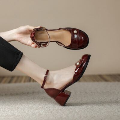 Mùa Thu Nhật Bản Giày Đơn Nữ 2023 Phiên Bản Hàn Quốc Mới Tất Cả Các Trận Đấu Bằng Sáng Chế Dây Da Đế Dày Gót Mũi Vuông Giày Đế Giản Dị