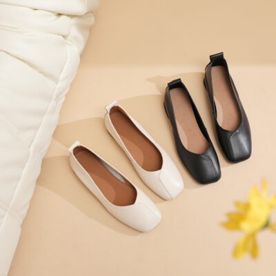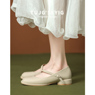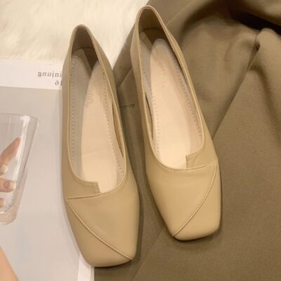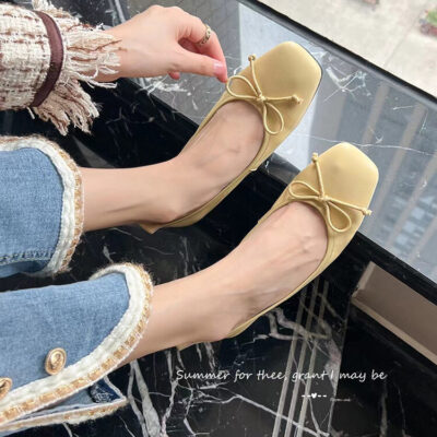 Hồng Kông 2023 Da Mềm Đế Bằng Giày Đơn Nữ Đầu Vuông Gót Thấp Da Mềm Phong Cách Cổ Tích Kiểu Pháp Miệng Dẹt Tính Khí Doudou Giày Mùa Hè