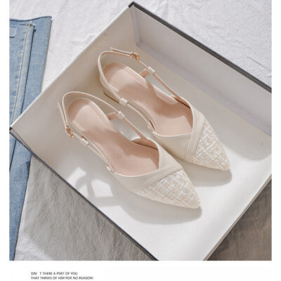 Bao Đầu Bán Dép Nữ Mùa Hè 2023 Mới Lưới Thoáng Khí Không Gót Đế Dày Bên Trong Xăng Đan Cao Nhỏ Giày Trắng