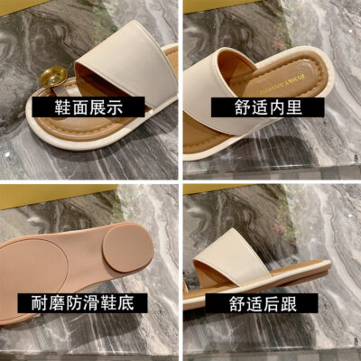 Dép xỏ ngón mũi tròn trang trí bằng kim loại đáy mềm bề mặt mềm nhà máy cung cấp trực tiếp 2023 dép lê nữ thời trang mùa xuân hè mới