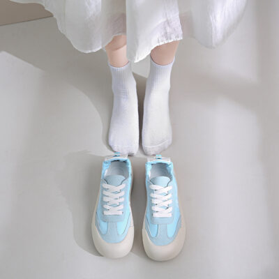 Mùa xuân năm 2023 mới giày đơn giản đế dày, đế mềm, bề mặt mềm, giày thể thao buộc dây hai dây cho nữ, giày mẹ phong cách cổ điển