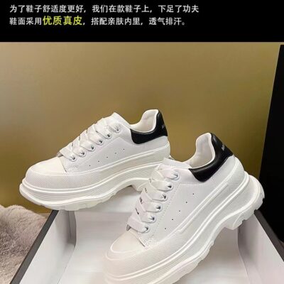 McQueen trắng 2023 giày đế dày mới giày nữ giày McQueen nhỏ màu trắng giày tăng chiều cao ren trước nữ bốn mùa mẫu phù hợp bán buôn