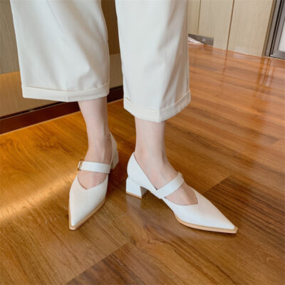 Mary Jane giày cao gót khóa thắt lưng giày đơn cảm giác thiết kế của phụ nữ thích hợp gót trung bình miệng nông mũi nhọn khí chất Giày gót dày kiểu Pháp