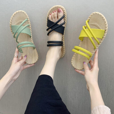 Dép và dép kiểu mới dành cho nữ mặc mùa hè phong cách La Mã phiên bản Hàn Quốc in lưới màu đỏ đáy dày dép đi biển thời trang nữ