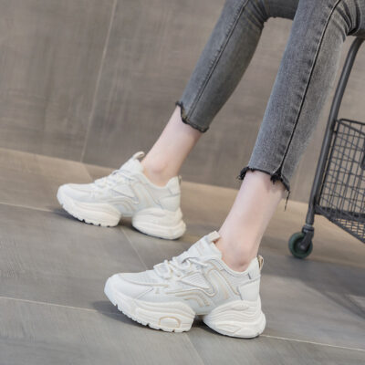 Mùa Hè 2023 Da Mới Bên Trong Tăng Cao Đế Dày Nhỏ Trắng Giày Thoáng Khí Dốc Gót Đế Dày Giày Nữ Sinh giày Nữ