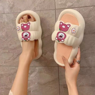 Xăng đan đế dày nữ mùa hè ins triều bản Hàn Quốc dễ thương trong nhà mặc nhà đầu gấu hoạt hình thời trang muffin kéo