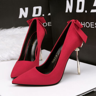 608-5 Thời Trang Hàn Quốc Da Lộn Mũi Nhọn Nơ Dẹt Gót Gợi Cảm Giày Cao Gót Đơn Giản Chuyên Nghiệp CV Nữ
