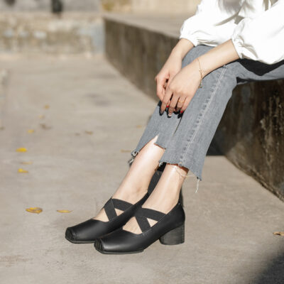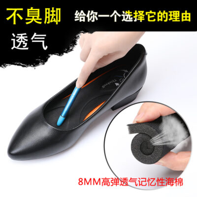Giày công sở nữ giày da màu đen đế mềm mùa hè giày bệt thoải mái gót vừa dày gót đơn giày nữ làm việc chuyên nghiệp