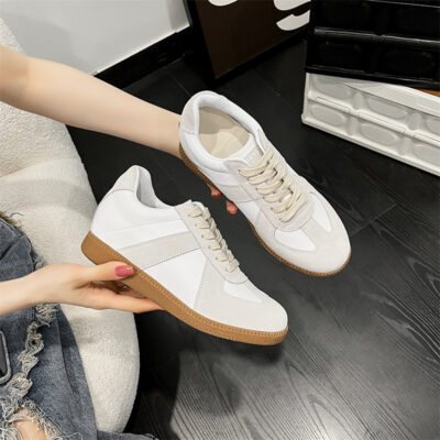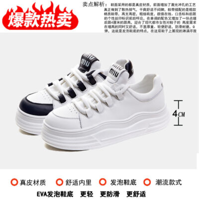 Giày tập kiểu cổ điển Đức tăng chiều cao bên trong cho nữ 5cm2023 mùa hè mới giày trắng nhỏ phù hợp với đế bằng thể thao thông thường