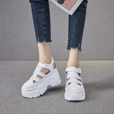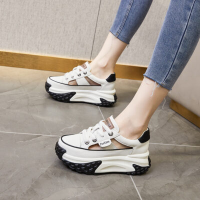 Da Rỗng Da Bố Giày Nữ Mùa Hè 2023 Mới Retro Trọng Lượng Nhẹ Bên Trong Tăng Chiều Cao Giày Thể Thao Giày Xăng Đan Đế Dày
