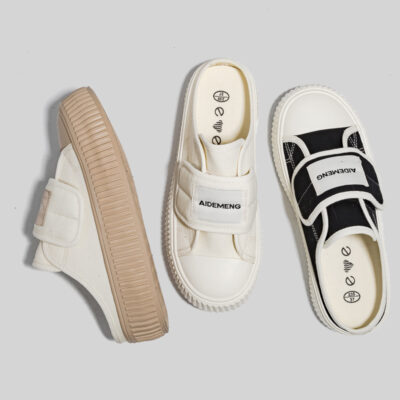Mùa hè 2023 mới giày vải đế dày nữ học sinh thường nửa kéo giày nhỏ màu trắng thoáng khí cho mọi trận đấu giày thể thao TMY605