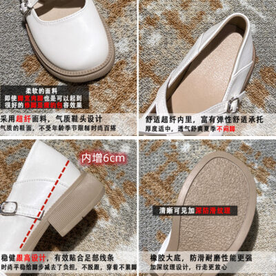 Nho Mom `Love Cycle ~ Giày da nhỏ tăng chiều cao bên trong Size nhỏ Đế dày Mary Jane Gót dày Mũi tròn Giày đơn Giày nữ